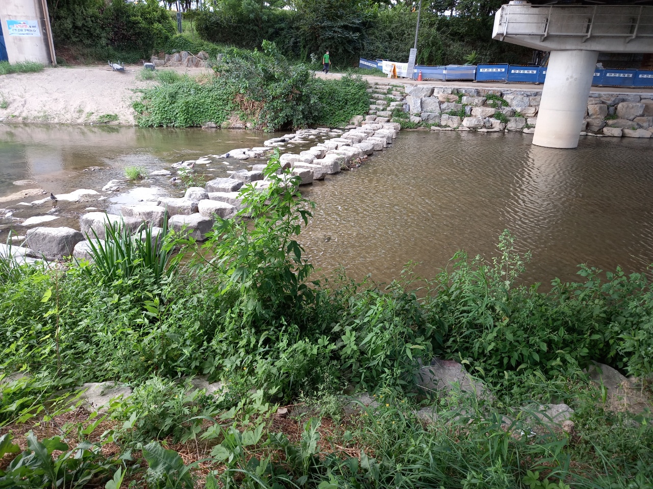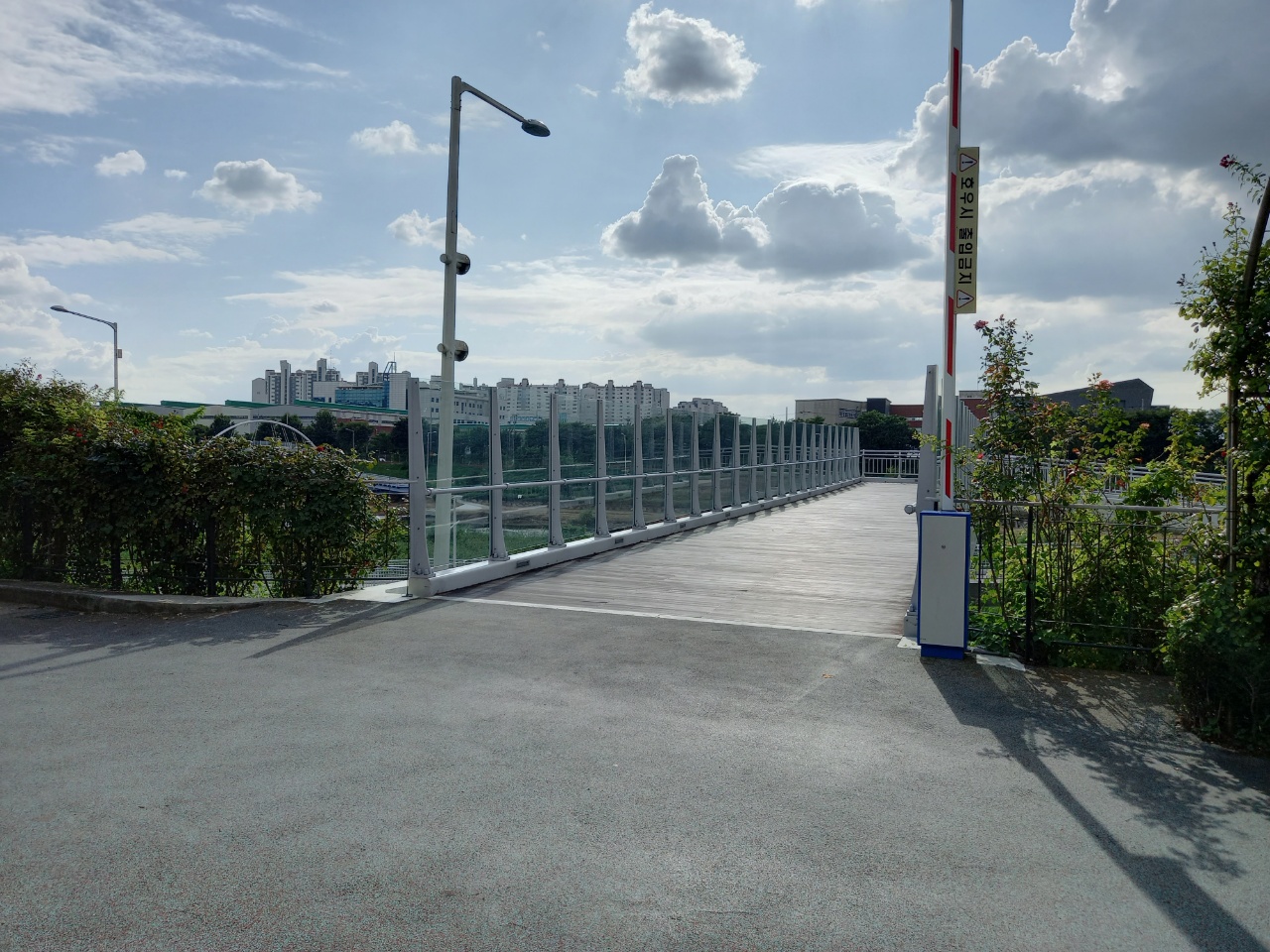 여기 다리를 건너면 중랑천으로 갈 수 있어요.