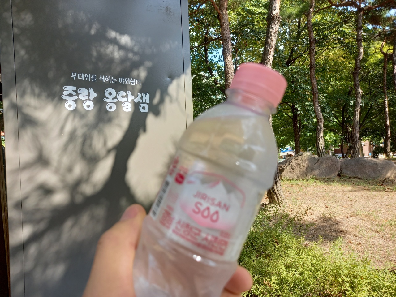 산책 나올 기분 좋은 마음에 물 갖고 오는것을