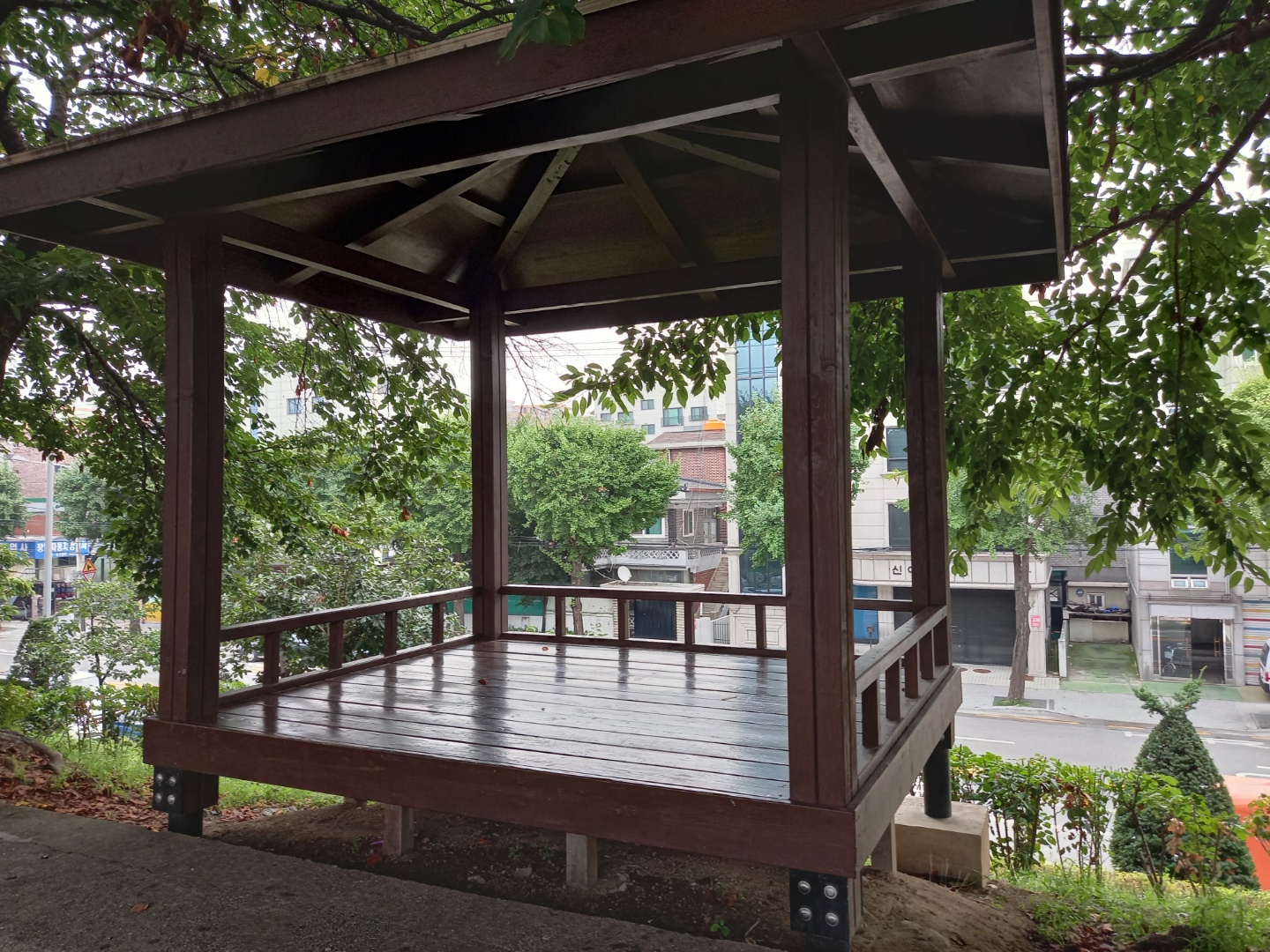 걷다가 편하게 쉴 수 있는 정자 그늘이 있어요.