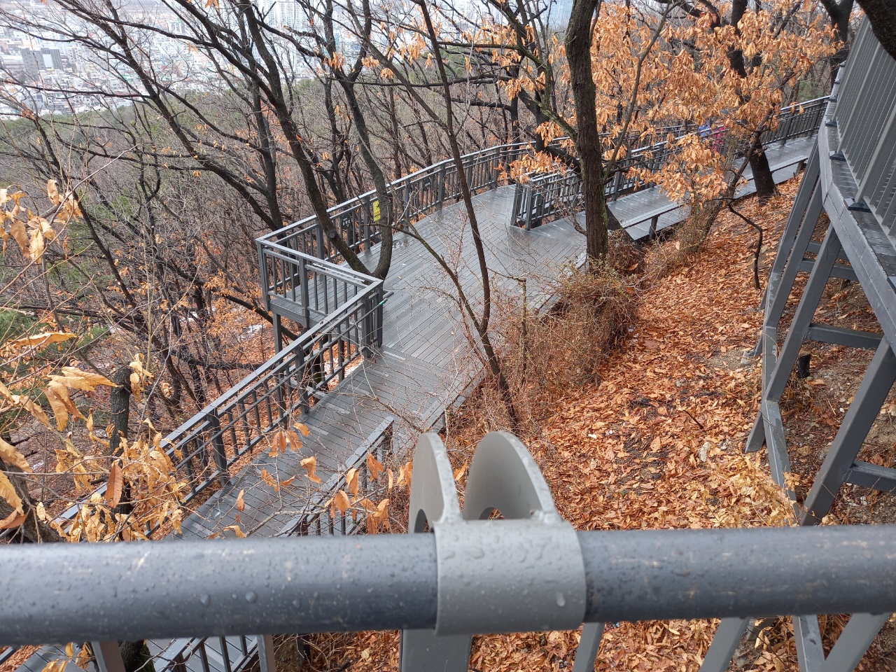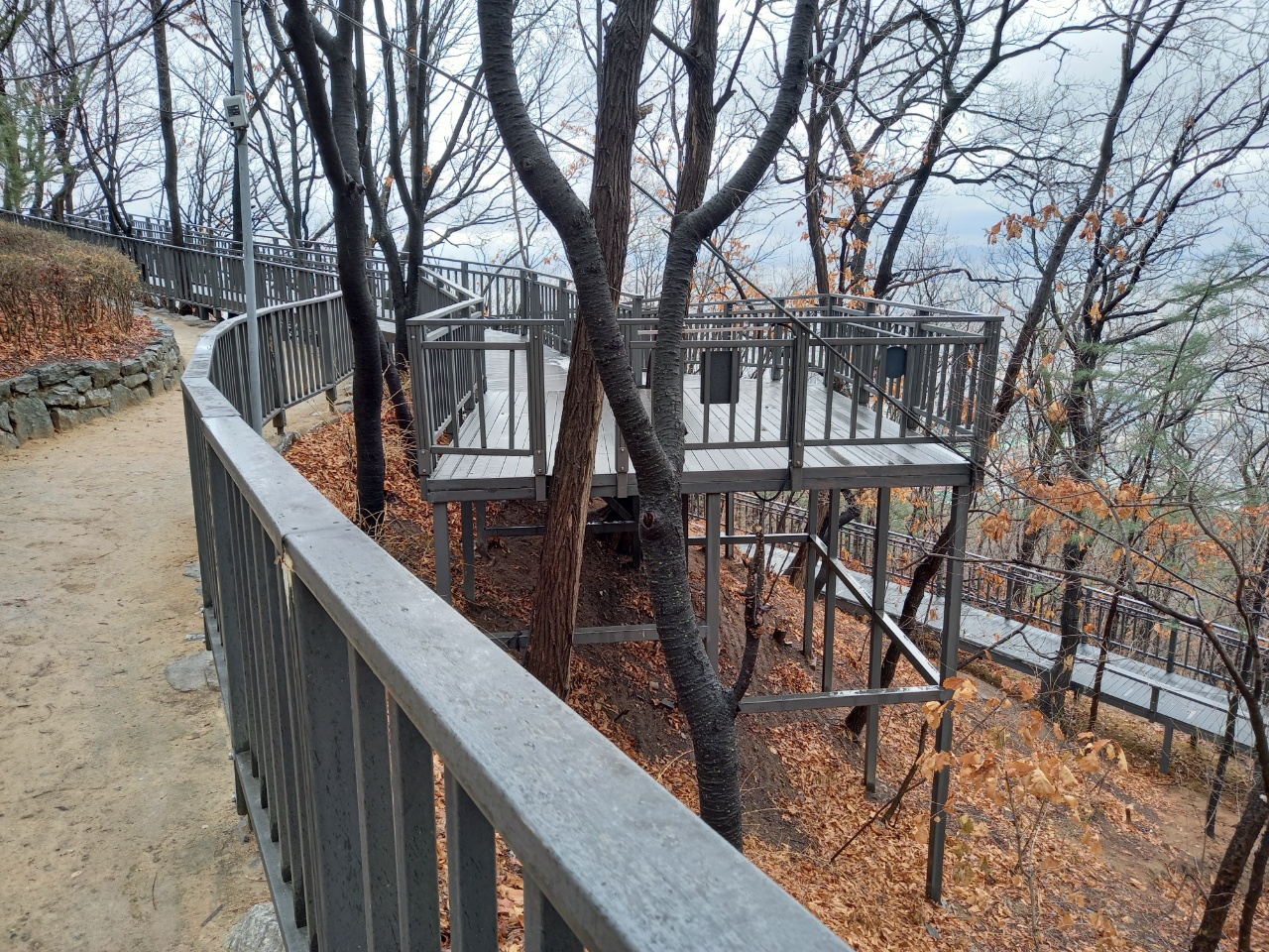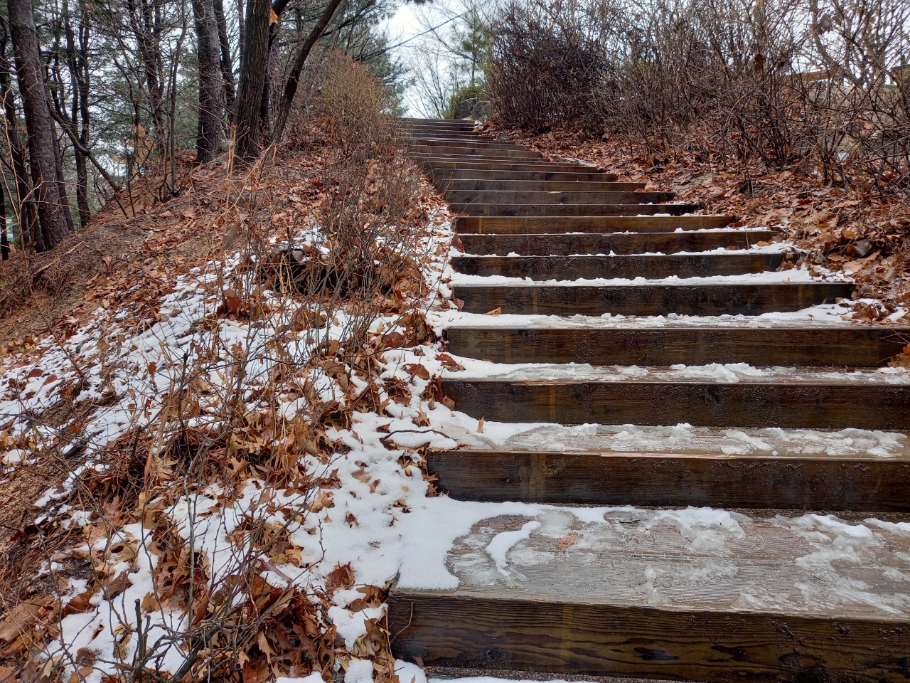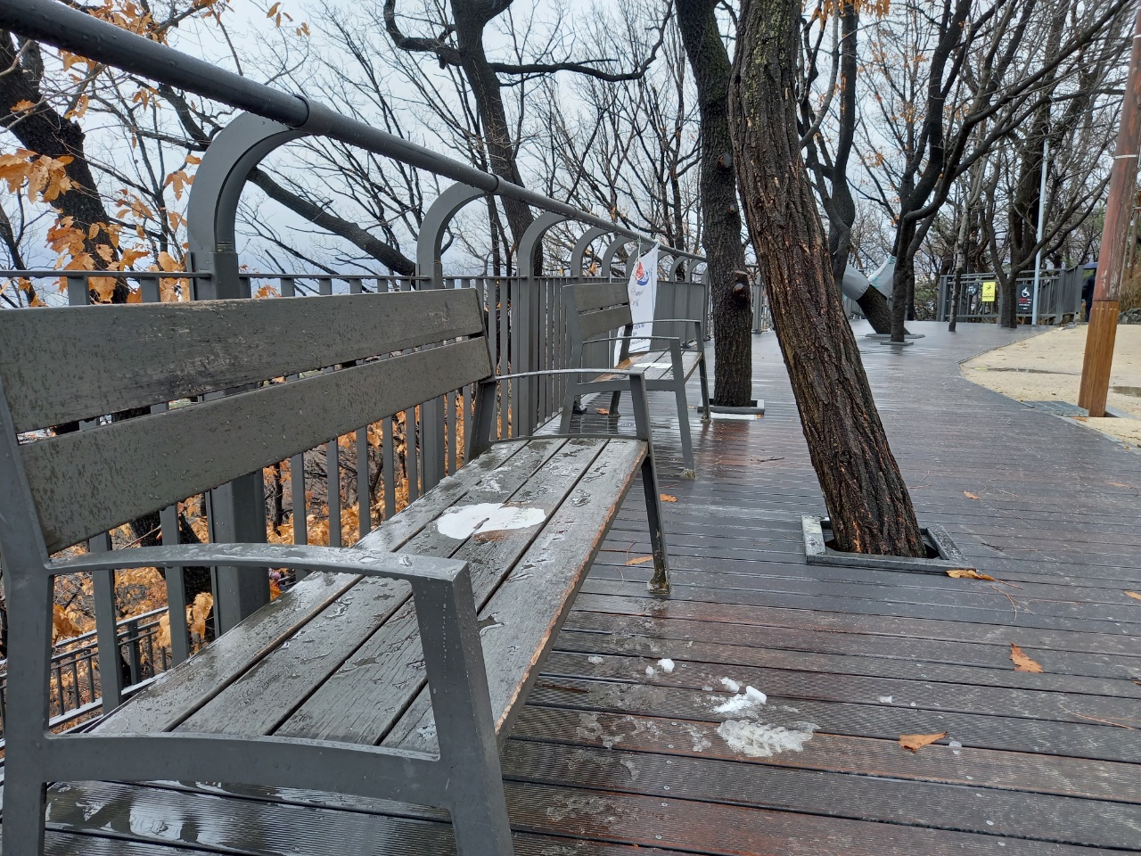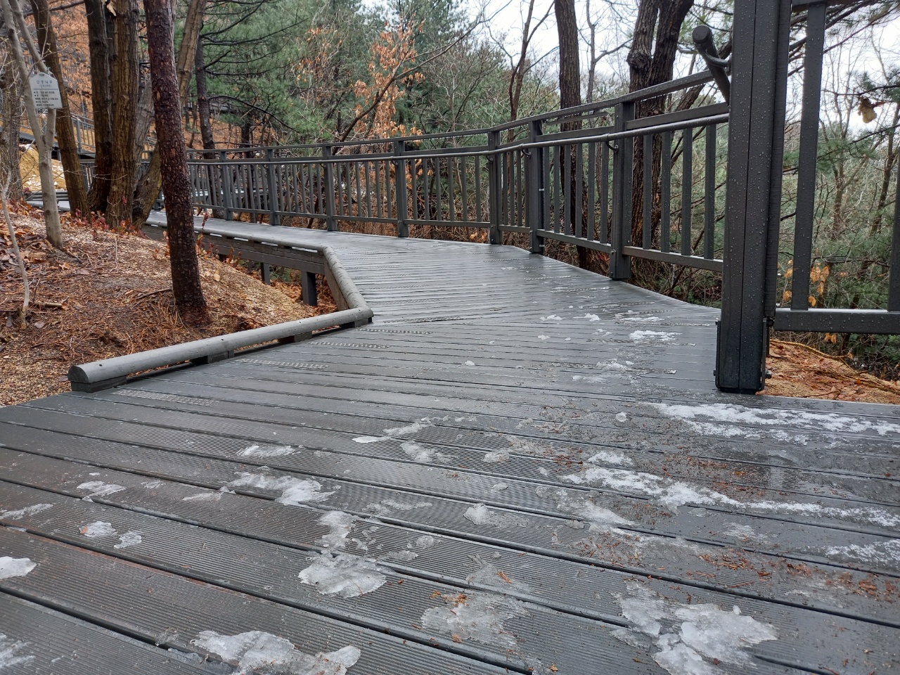 눈이 살짝 온후 나무데크 둘레길에 눈이 그대로 있으면서