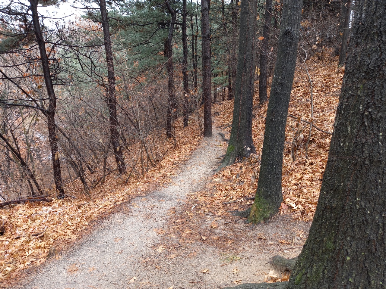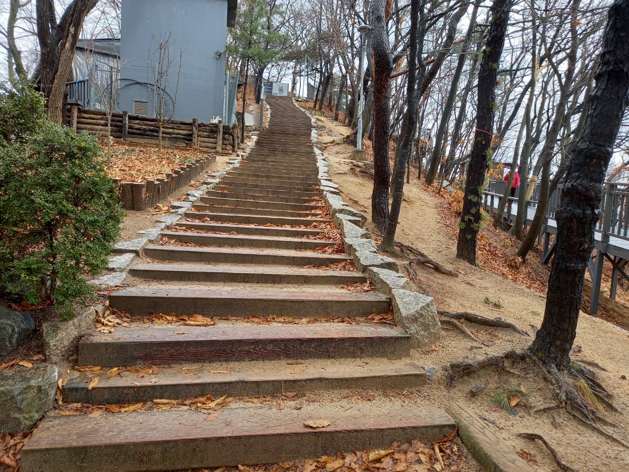 두군데 정도 계단으로 경사를 딛고 오르는 곳이 있어요.
