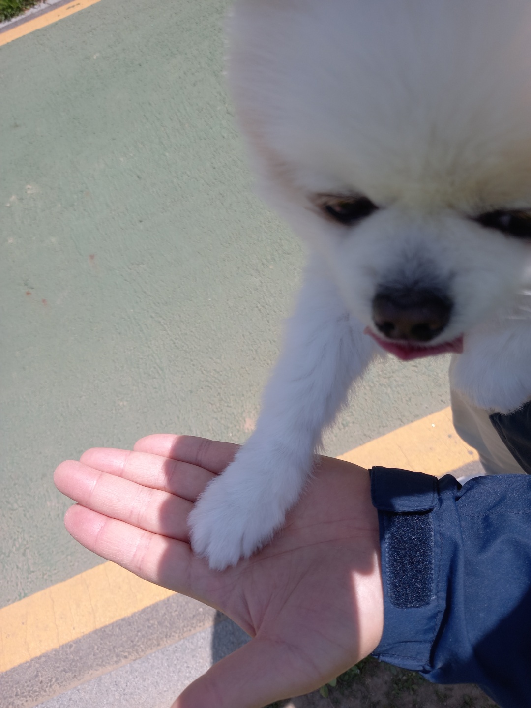 돌돌이 자신있게 앞손을 앞으로 내딛고 싶어해요.
