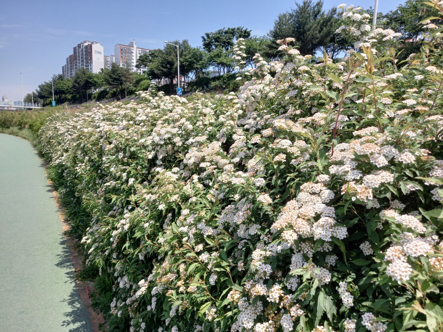 하얀 뭉게뭉게 꽃무리가 꿈속에 온듯한 느낌을 주네요.