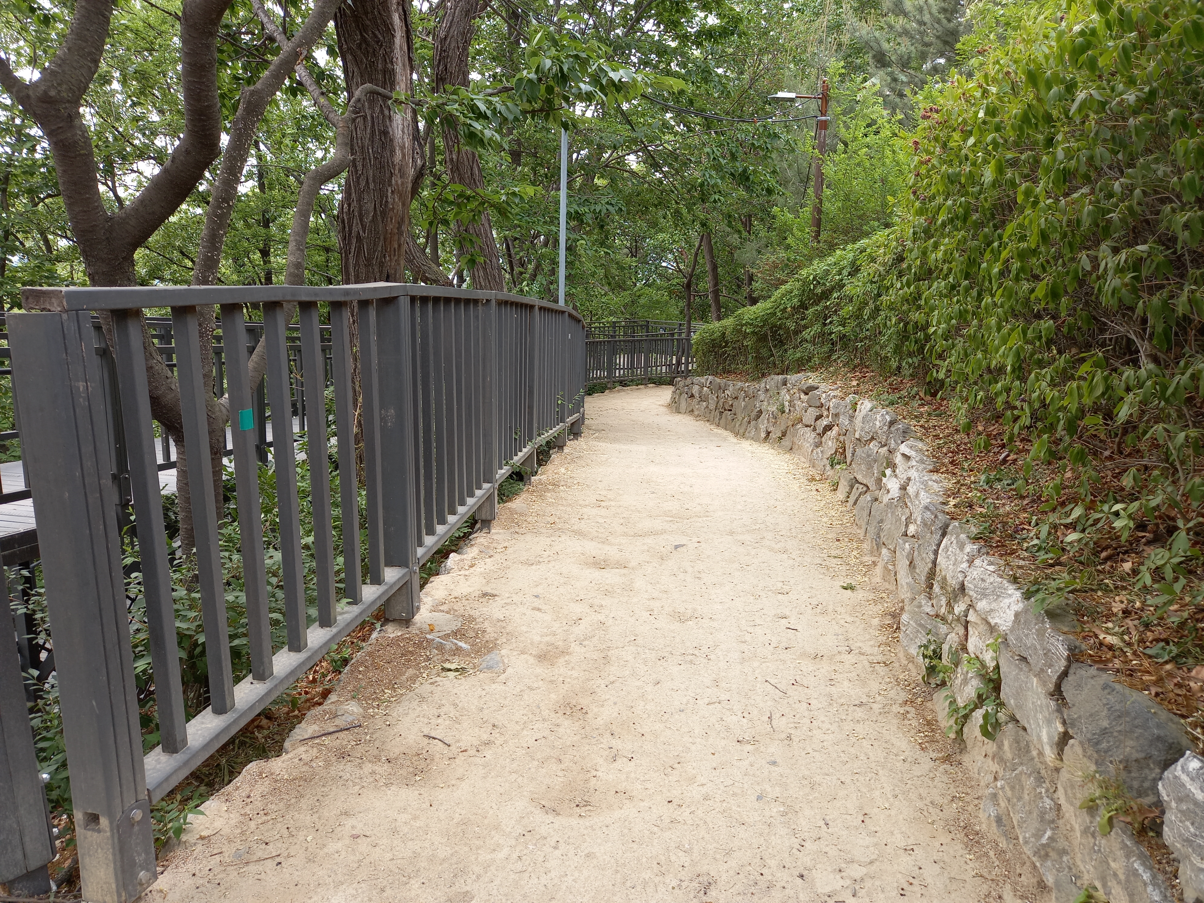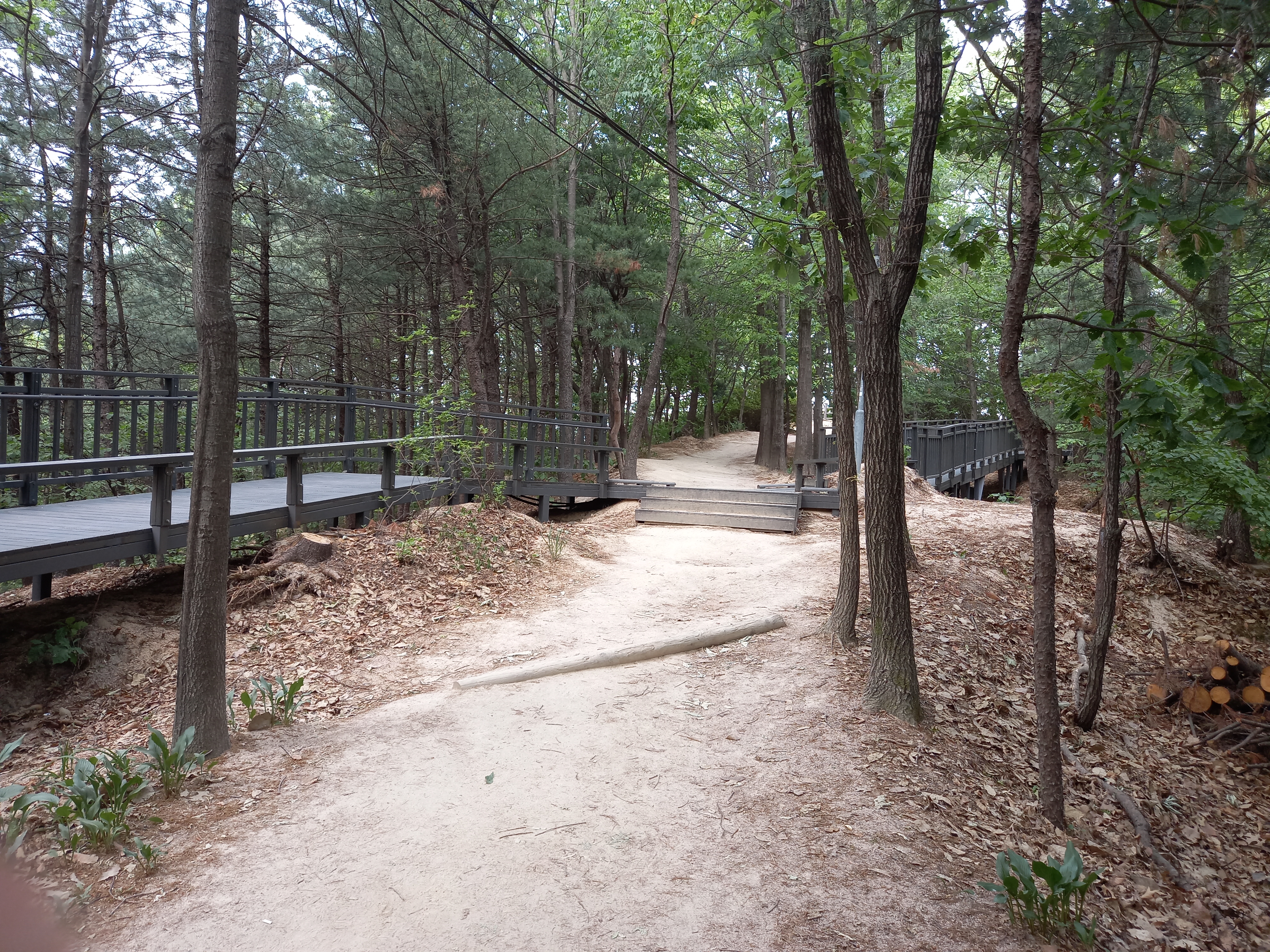 기존 흙길과 나무데크 동행길이 함께 나란히 있어요.