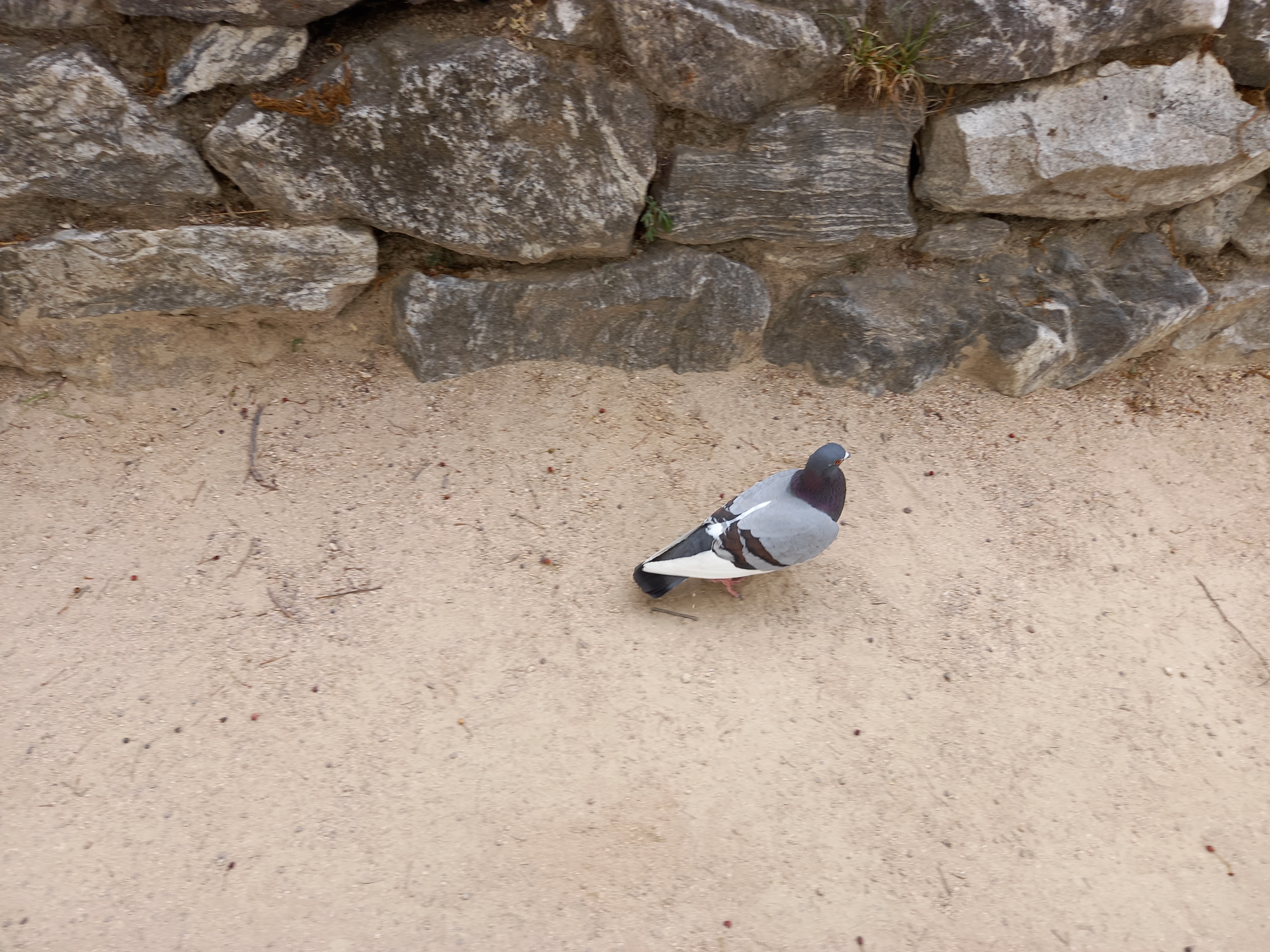 그 옆을 비둘기 한마리가 유유자적 거닐고 있어요.