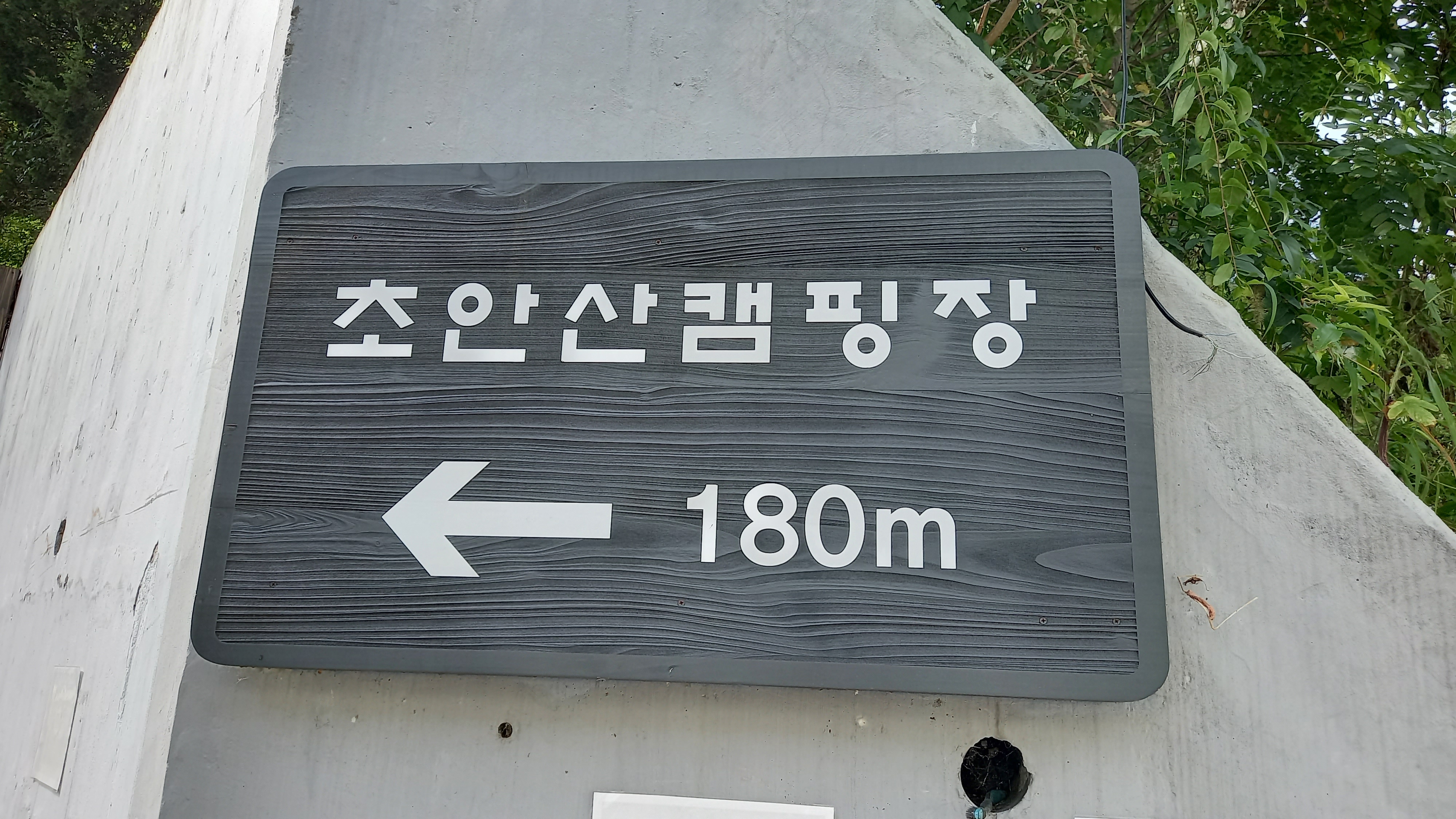 초안산캠핑장 180m 씌여진 표지판을 보고