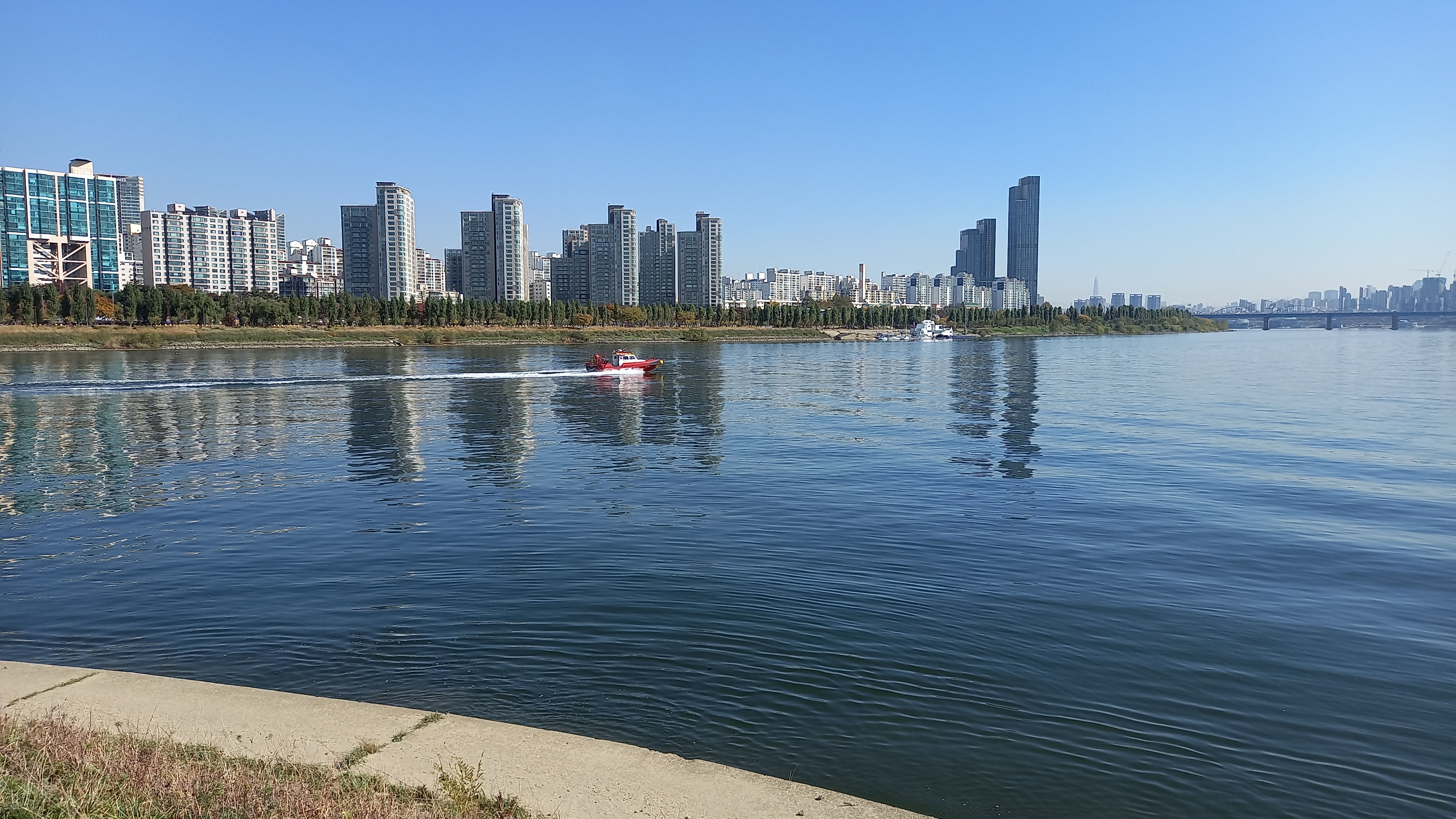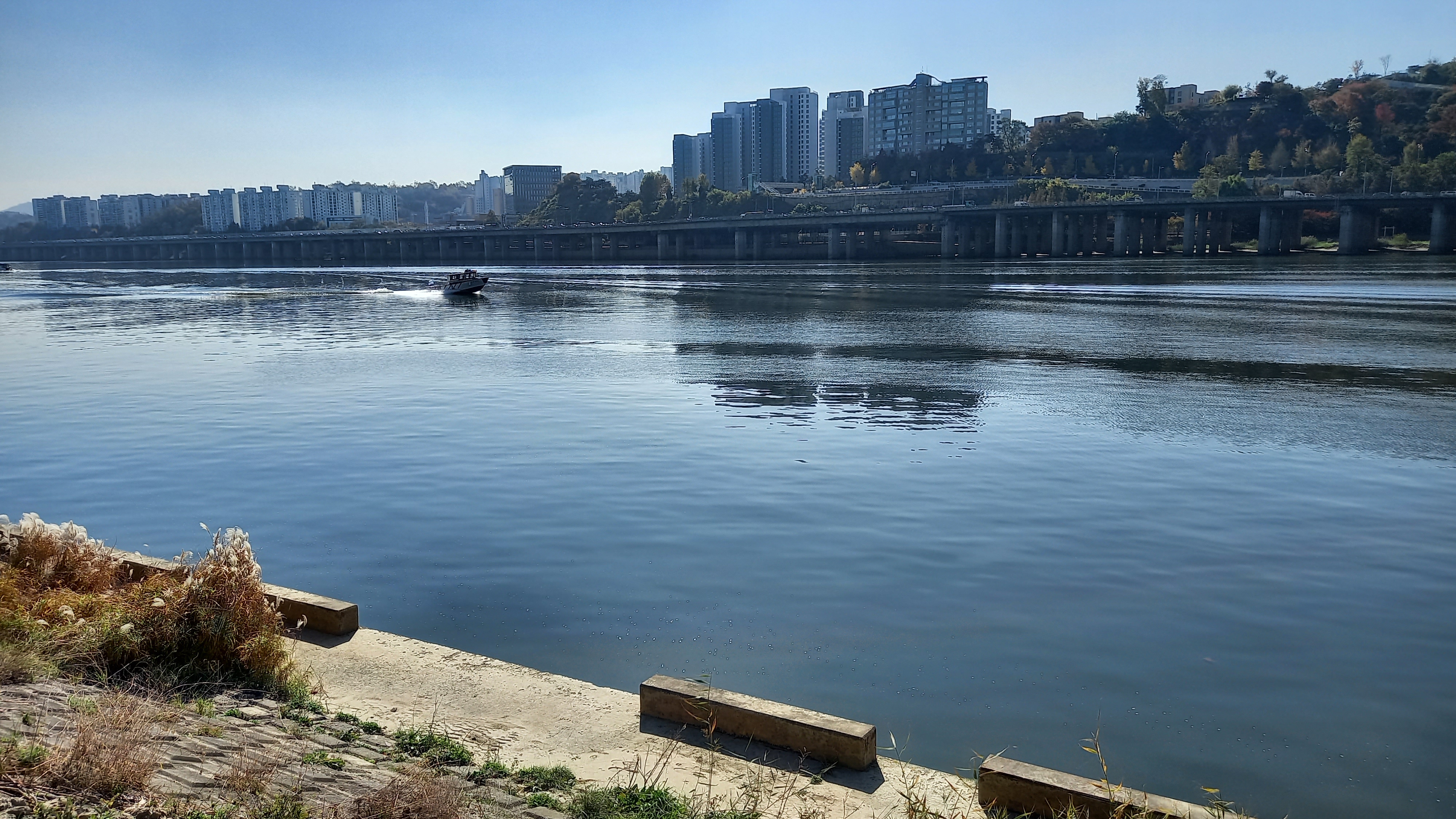 가끔 한강에서 보트도 지나가구요.