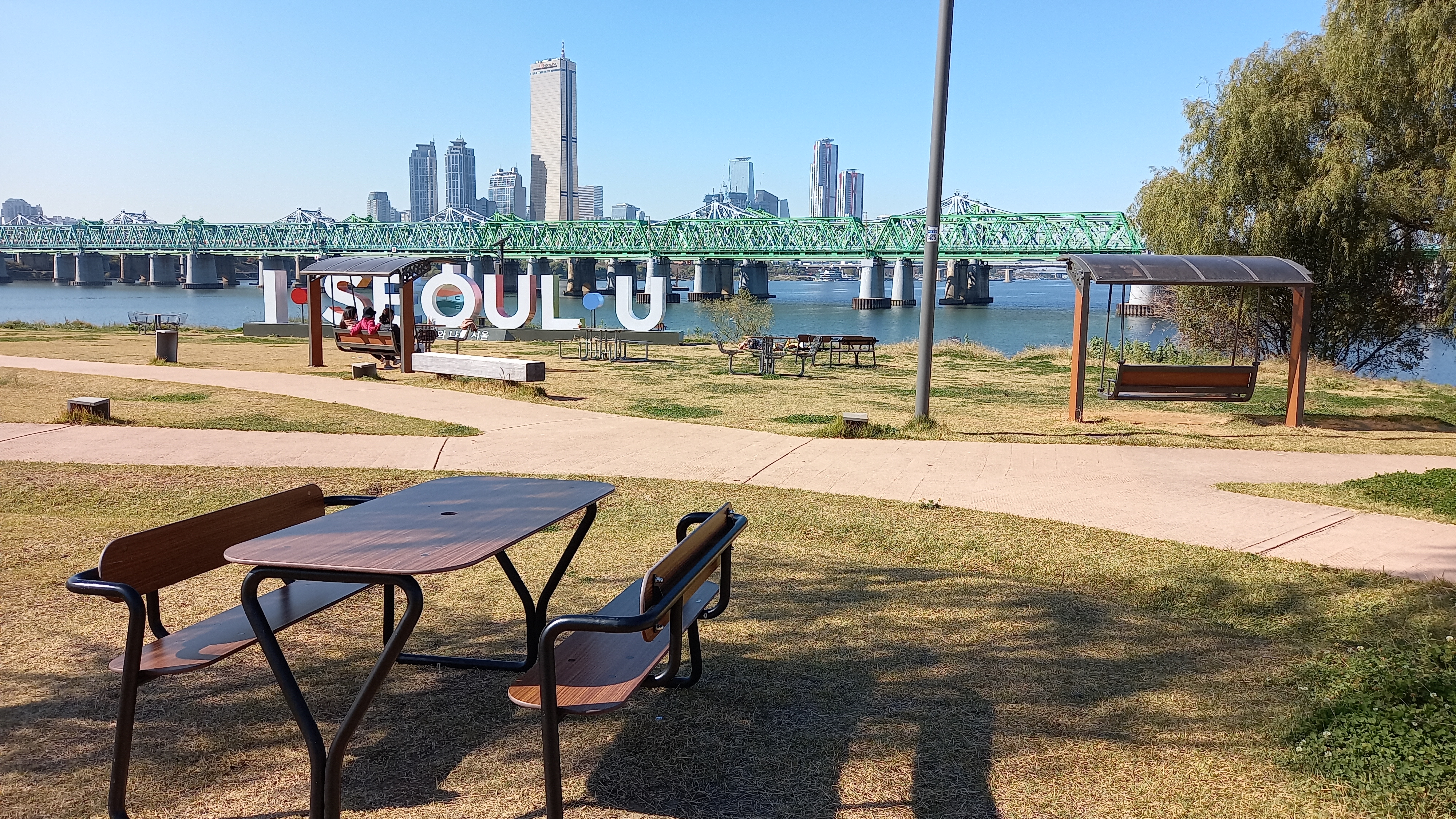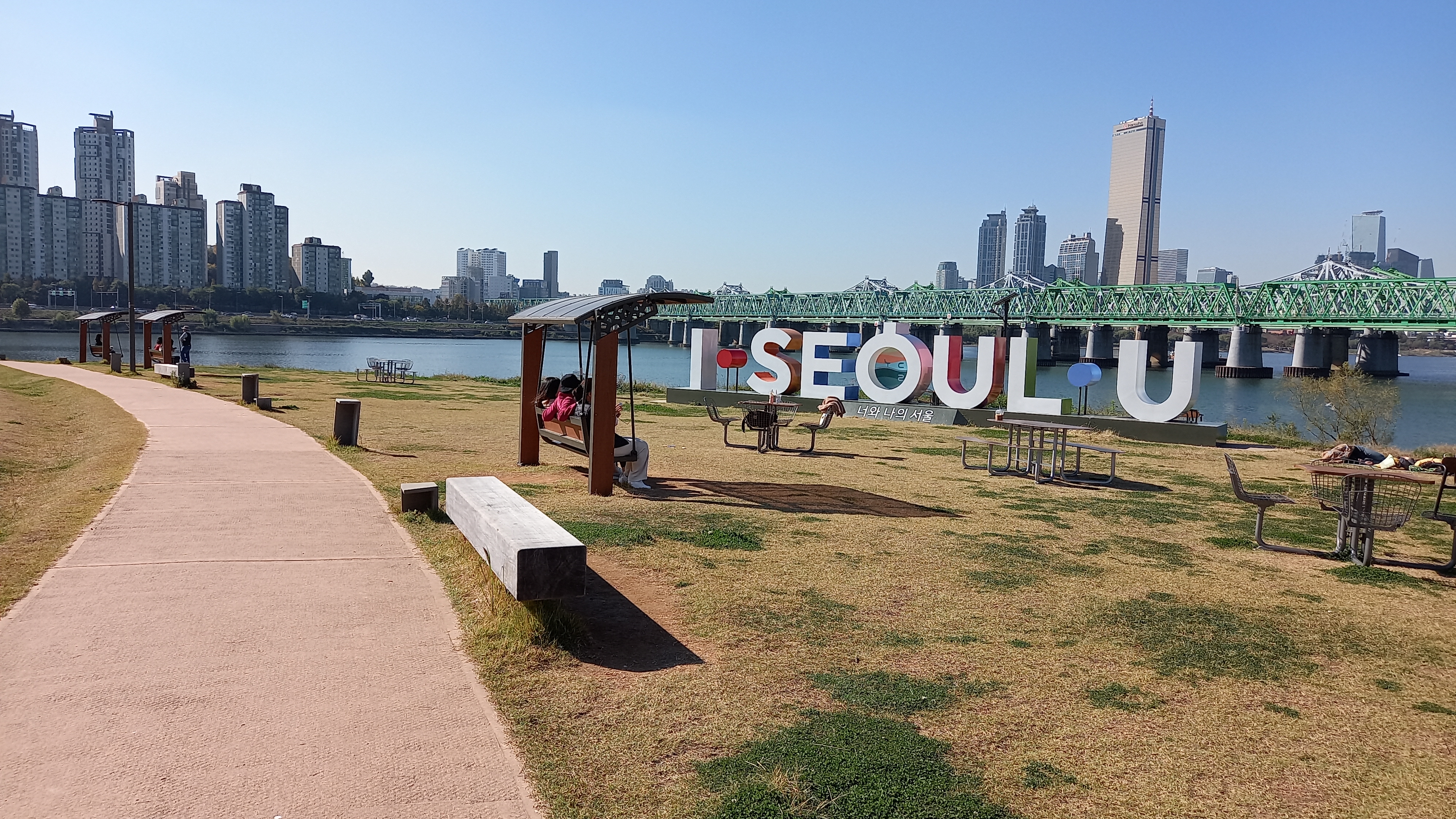 한강다리를 걸어가는 기분이 넘 좋아요.
