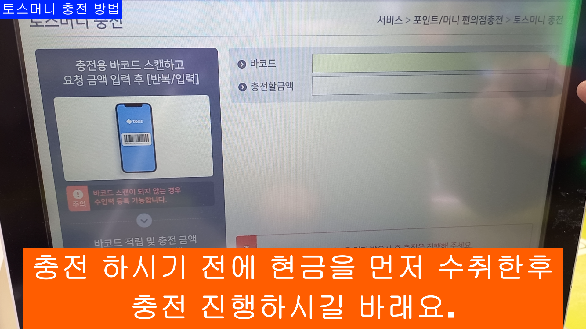 충전 하실 금액의 현금을 먼저 꼭 받으시고